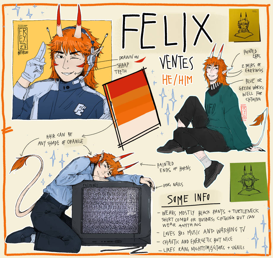 he is a chaotic optimist trying to navigate through a world that he does not understand, and neither does this world really understand him. his curious nature and friendly personality help him connect to other humans and make it easy for him to find friends along his journey. he can be a good listener but he is usually more energetic than calm. when provoked or angry, he also uses this exceptional amount of energy to overreact accordingly.